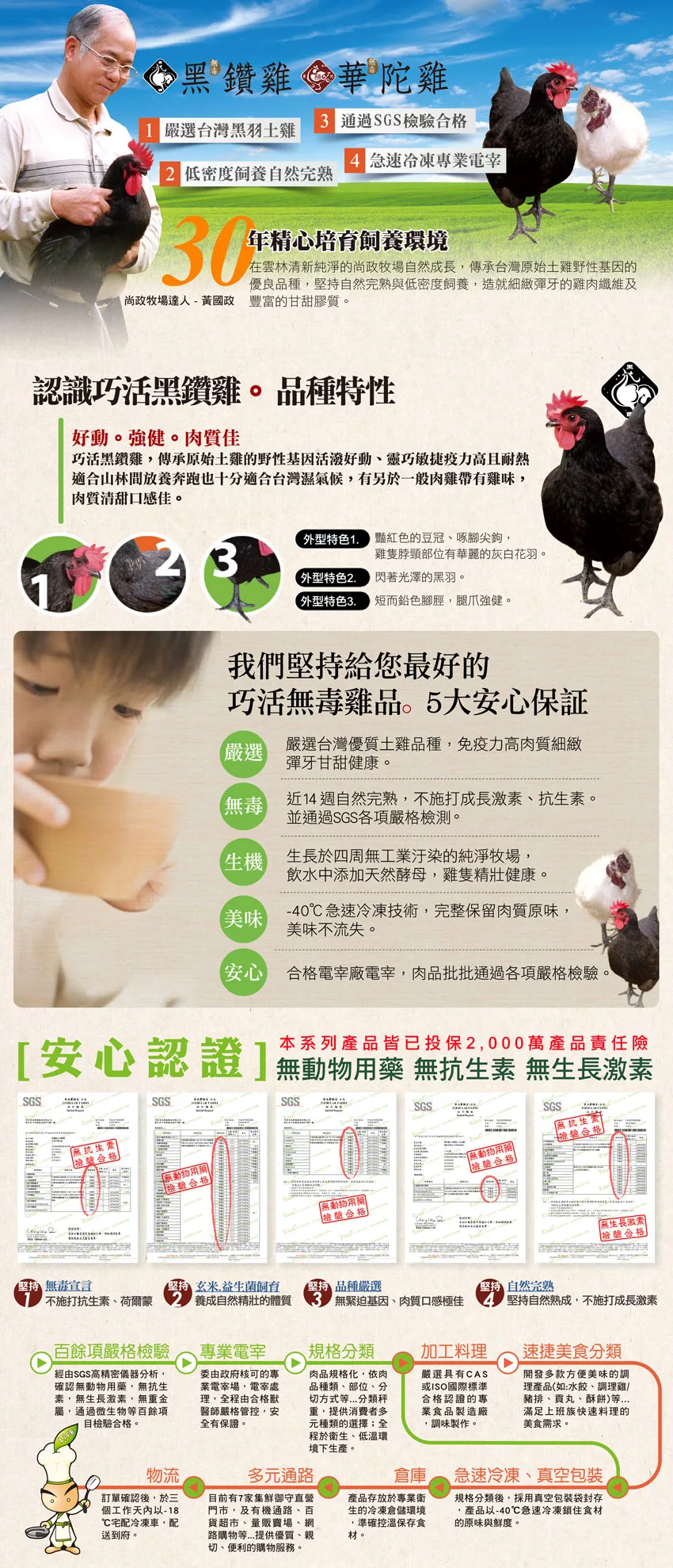 來自雲林純淨牧場的頂級黑鑽雞,採無污染低密度高保濕的飼養環境培育。